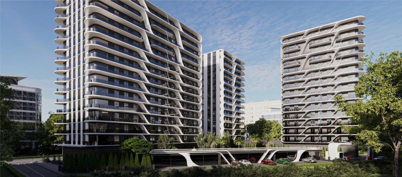 Geleceğin mimarisini bugüne taşıyan bu proje, sıra dışı tasarımı ve modern çizgileriyle şehir siluetine değer katıyor. Estetik kıvrımlarıyla dikkat çeken cephe tasarımı, yalnızca görsel bir zarafet değil; aynı zamanda fonksiyonel bir yaşam standardı sunuyor.